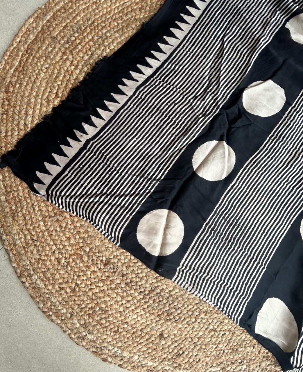 Experience the elegance of tradition with this Pure Modal Silk Bagru Hand Block Print Black Saree.